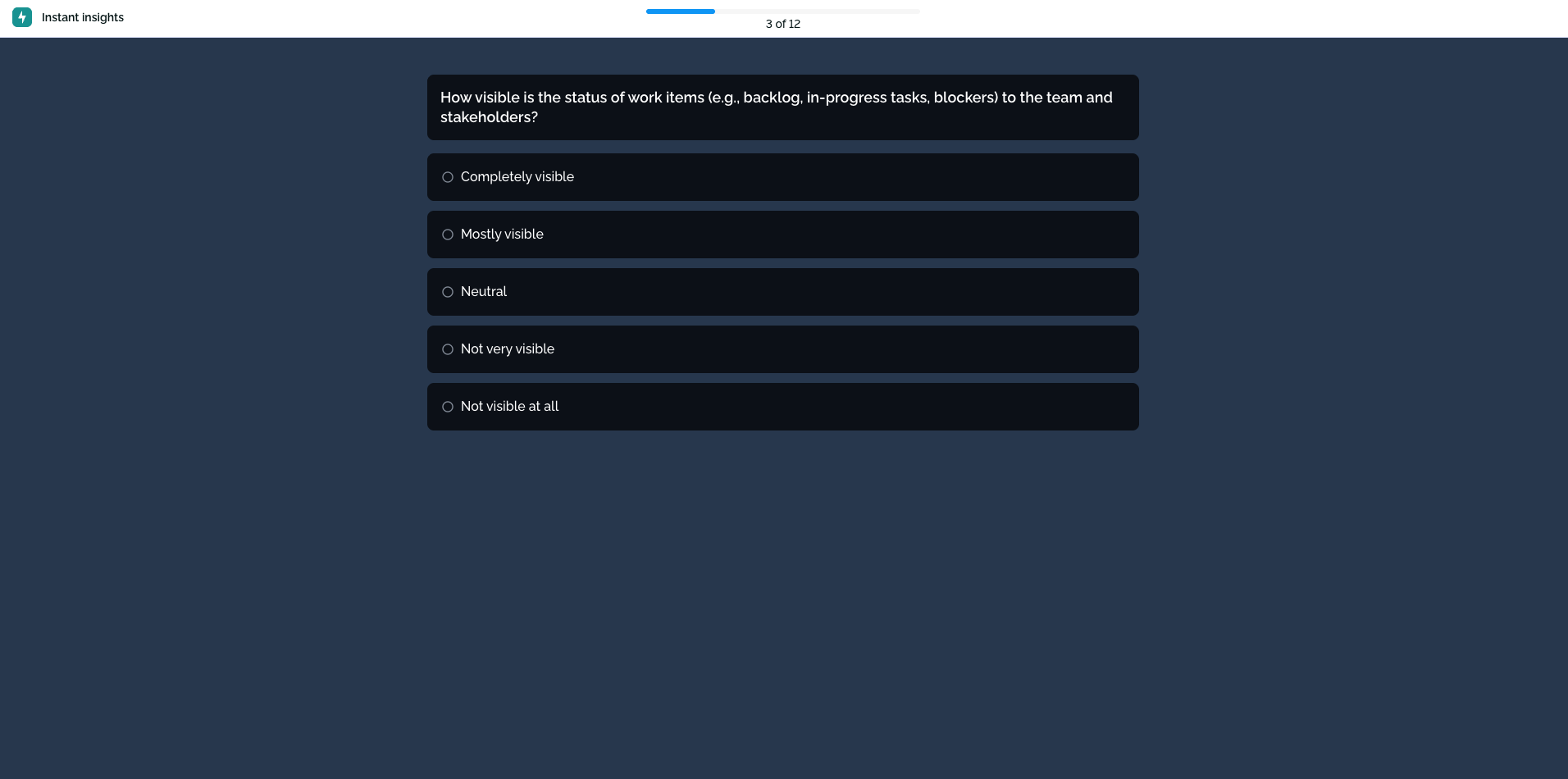 In the screenshot below we show you how to present the survey from the main instant insights screen