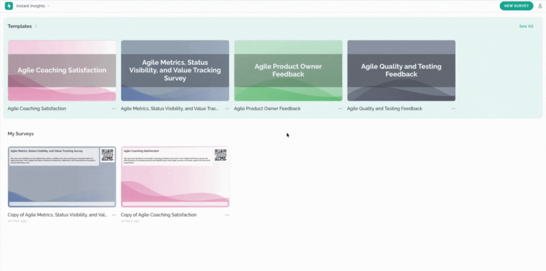 First and foremost, navigate to the Instant Insights Screen and click on the New Survey button to begin.